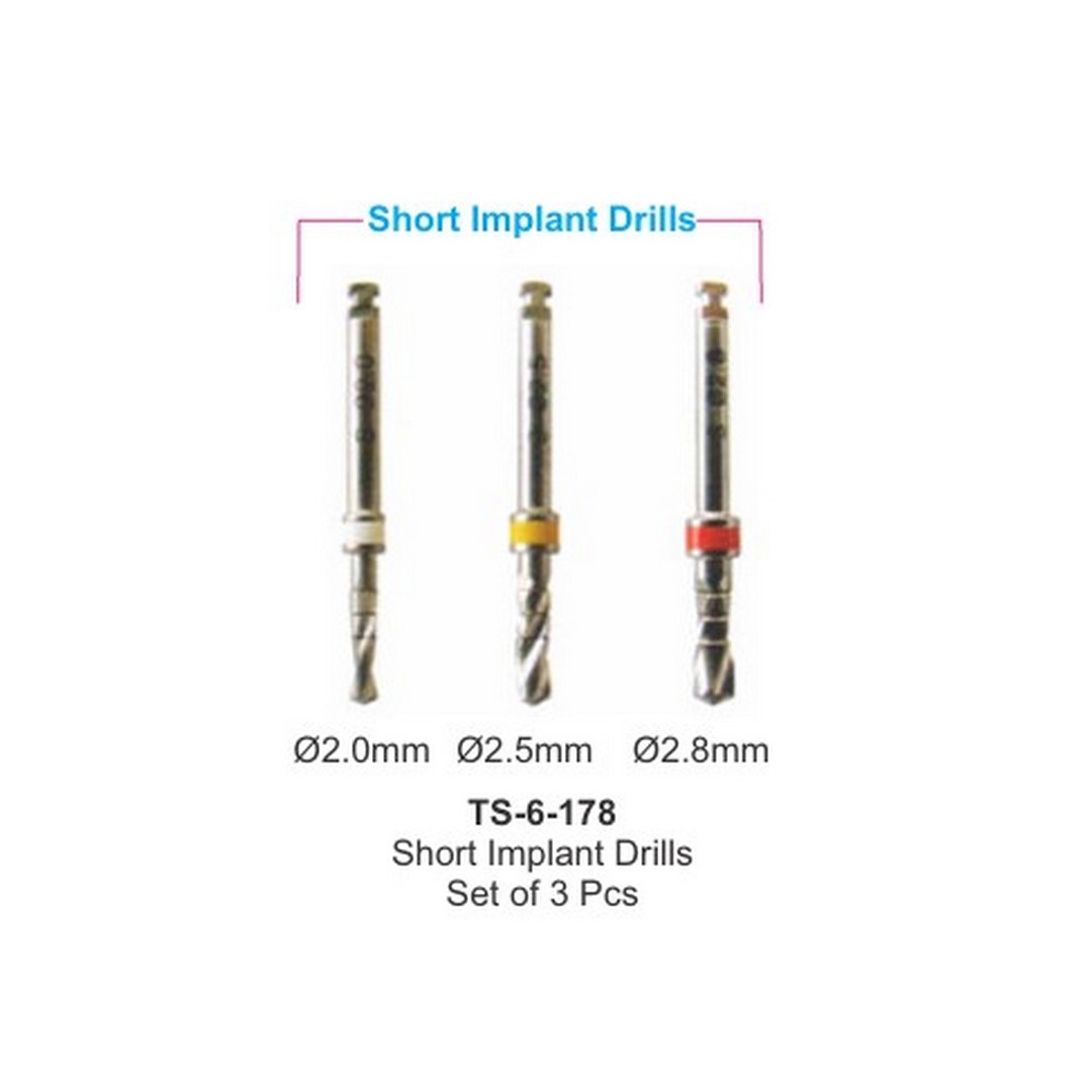 Implantology Short Implant Drills set of 3 Pcs